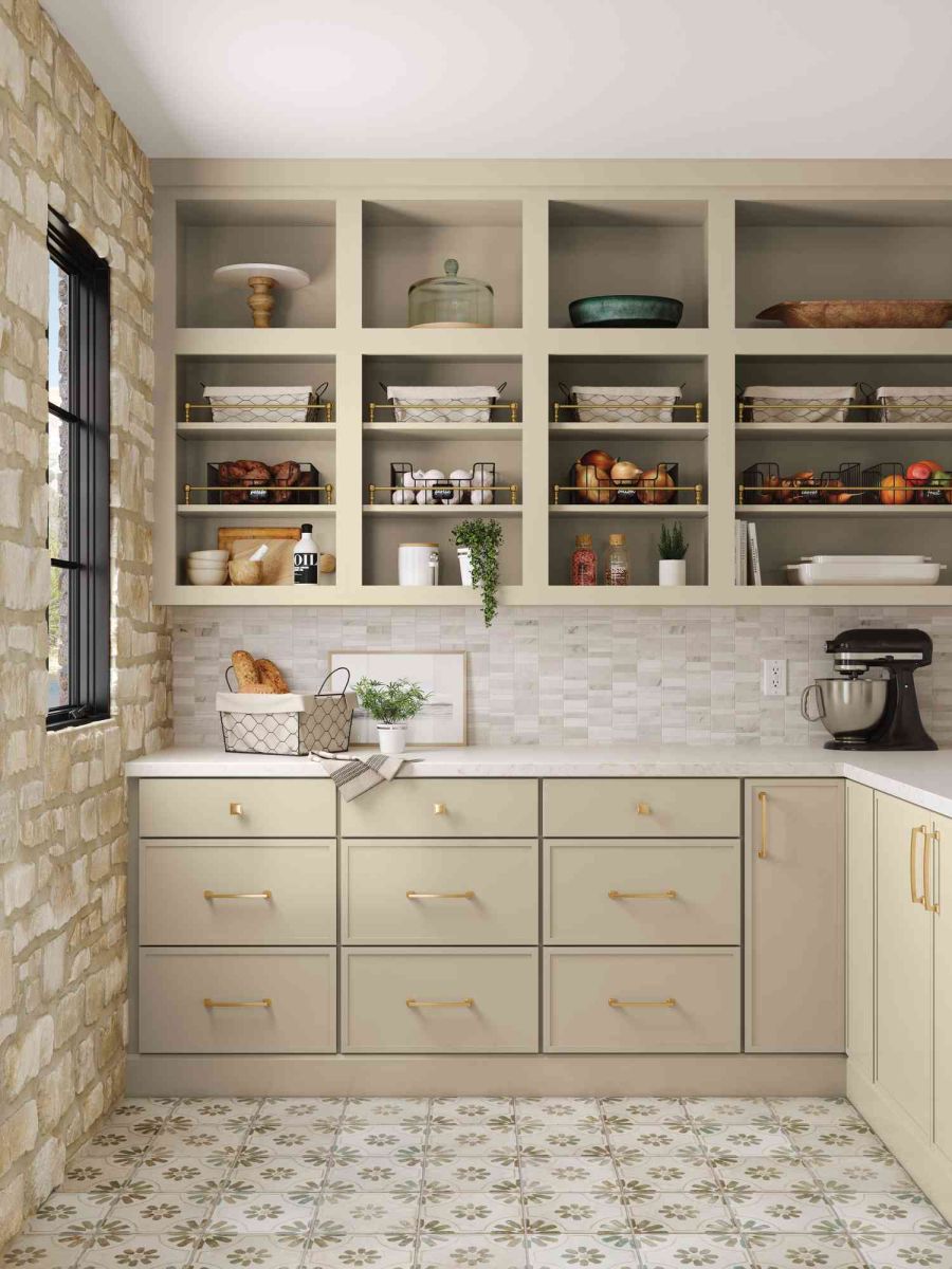 Hệ ray trượt giảm chấn, ngăn kéo thông minh, tủ kho kín (“walk-in pantry”), cánh tủ ẩn (“hidden cabinetry”), tay nắm ẩn.